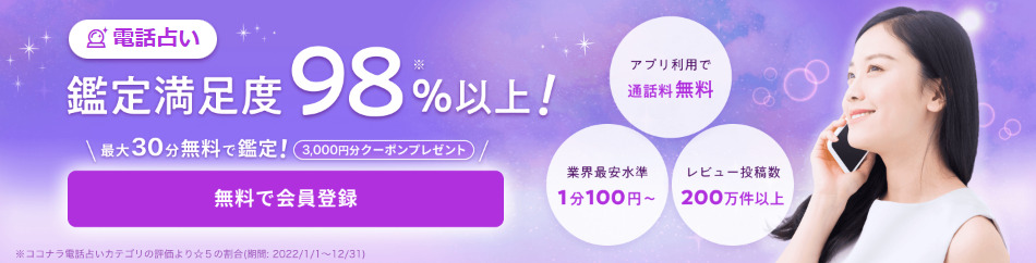 全国CM放映中の安心サービス【電話占いココナラ】初回3,000円無料🎁