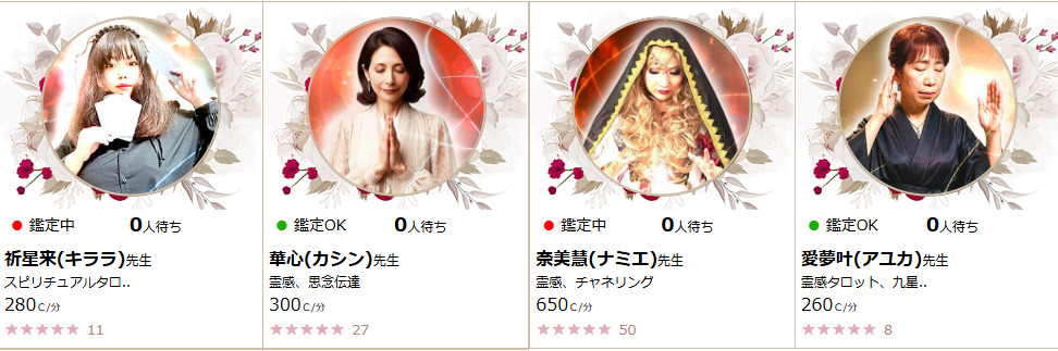 話題の新サービス。「全占い師と初回5分無料」で話せるため、自分と波長の合う先生をノーリスクで探せます。ちょっとだけ聞いてほしい時にも最適。